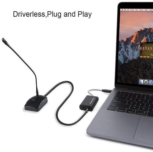 Sound Card Solution CableCreation USB-C to audio adapter is an ideal solution for an external sound card. It enables your USB Type-C/Thunderbolt 3 equipped computers or cellphones to connect an existing 3.5 mm microphone, headset, speaker, etc. You do not need to buy an expensive USB-C earphone to match your new USB-C computer or cellphone