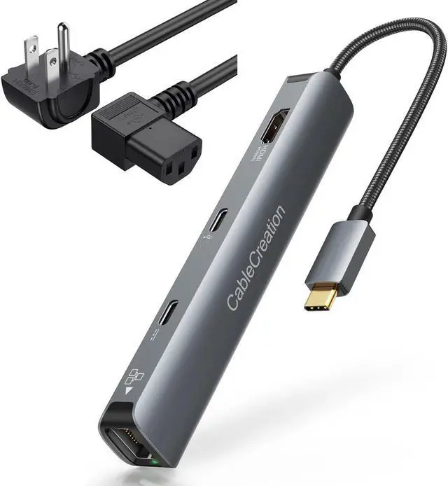 CableCreation 6-IN-1 USB C Hub Multiport Adapter A MUST HAVE multifunctional docking station! USB C port expander made it easy for your laptop to support all of these. Providing a really nice solution for your port-deficient laptop to have additional ports, to meet your daily needs. 1 x HDMI port -- Up to 4K @ 60Hz and HDR, 1080p 1 x PD USB C Charging Port -- Max 100W PD 3.0 charging 1 x USB C Data Port -- Max 5Gbps Data transmission 2 x USB 3.0 A Ports -- Max 5Gbps Data transmission 1 x RJ45 Ethernet port -- Max 1000Mbps Gigabit network