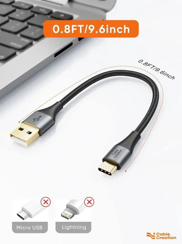 CableCreation Short USB to USB C Cable 0.8ft, Drable USB C Charger Cable Braided for Galaxy S23 S23+ S22+ S22 S21 S20 Note 20, MacBook, iPad Mini 6, iPad Pro 2020, 0.2m