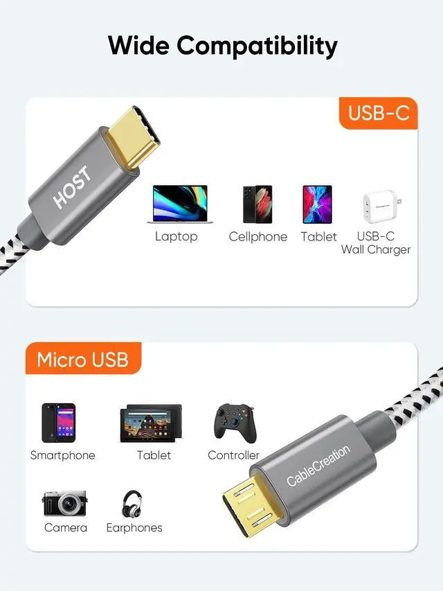 What You'll Get: 3Pack x CableCreation Type C to Micro USB cable. CableCreation offers 24-Month product replacement warranty for all Cables, backed by friendly customer service