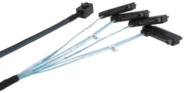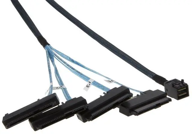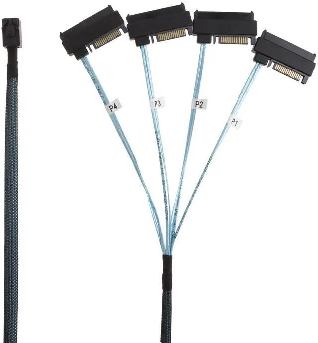 Internal Mini SAS SFF-8643 to (4) 29pin SFF-8483 connectors with Power Port ^^ Mini SAS (SFF-8643) is Host, 4 SAS 29 (SFF-8482) is target, Internal mini Serial Attached SCSI x4 (SFF-8643) to (4) x1 (SFF-8483) Serial Attached SCSI (controller based) fan-out cables ^^ Before you buy this cable, please make sure the Mini SAS (SFF-8643) on your motherboard or RAID Controller. If the Mini SAS (SFF-8644) on your backplane, this cable will not work with them ^^ Mini SAS (SFF-8643) connect to the controller, 5 SAS connect to the HDD (Hard Disc Driver) ^^ Connecting a SAS controller (SFF-8643) to four SATA/SAS disks (SFF-8483)