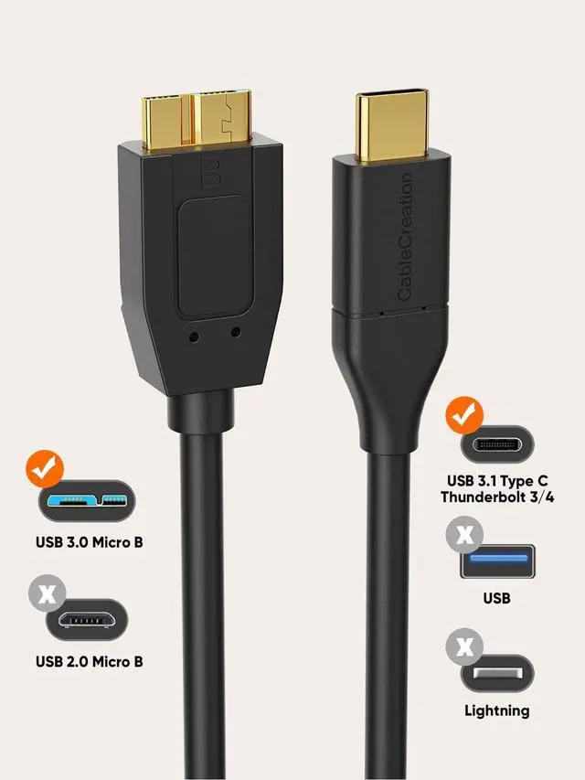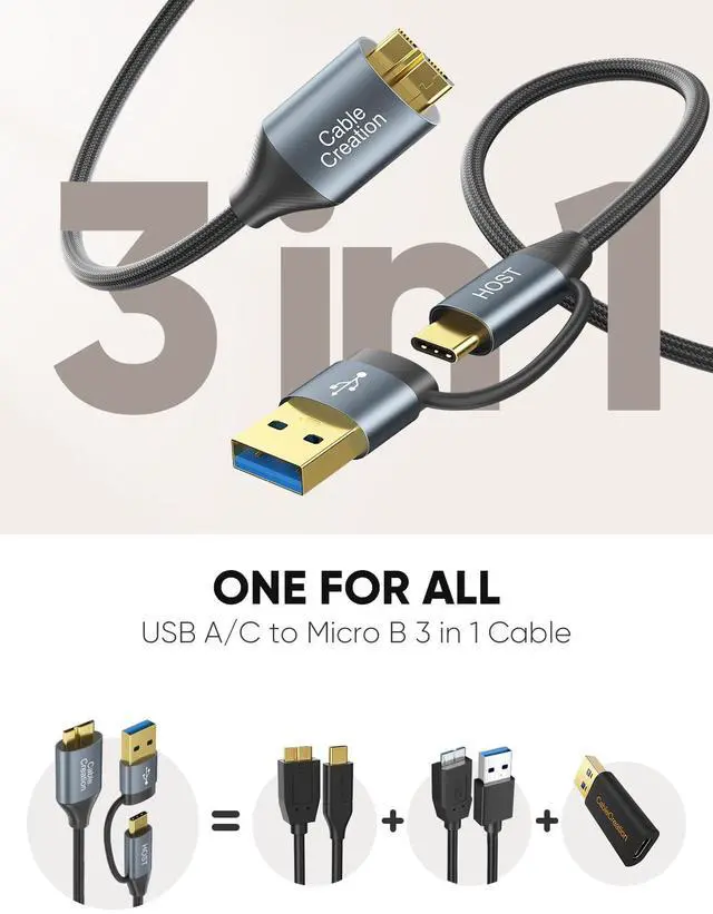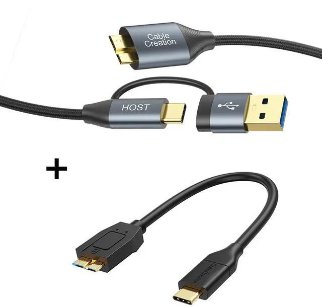 Package included 1pcs short 1feet USB C to Micro B hard drive cable + 2-IN-1 1 feet USB A/C to Micro B cable, total 2pcs ^^ USB C Compatibility ListUSB-C (USB Type C) is the Host side, compatible with MacBook Pro (2016~2020), iMac 2017, iMac Pro, MacBook Air (2018~2020), iPad Pro (11inch, 12.9 inch), Dell XPS 13 / 15, Google Chromebook Pixel, HP Pavilion X2, Yoga 910, OnePlus 6 6T 5 5T 3, Galaxy S22/ S20/ S10/ S9/ S8/ Note20/ Note10/ Note9/ Note8 and other Host based devices with USB Type C port ^^ Micro B Compatibility ListMicro USB B male is Target (Device) side, compatible with USB 3.1 Micro-B port devices such as Samsung Galaxy S5, Galaxy Note 3, Galaxy Note Pro 12.2, Nikon D800/D800E, Canon EOS 5DS/5DSR/5D4 camera and Portable USB 3.1 External Hard Drives including Canvio, Seagate FreeAgent, Western Digital (WD) My Passport, LaCie, Elements hard drives ^^ Short External Hard Drive CableYou will get: 1 CableCreation USB C to Hard Drive Cable 1 Feet 10Gbps Data Transfer. It is easy to carry, 100% contact efficiency. CableCreation offers 24 months warranty for all cables, backed by friendly customer service ^^ TipsIf it is the first time for you to connect a hard drive with a device, we would bring it to your attention: For different size of hard drives, generally 2.5 -inch hard drive does not need additional power supply, and 3.5 -inch need additional power supply. For different operating systems, there are different file format requirements. If you are not sure, please feel free to confirm with us