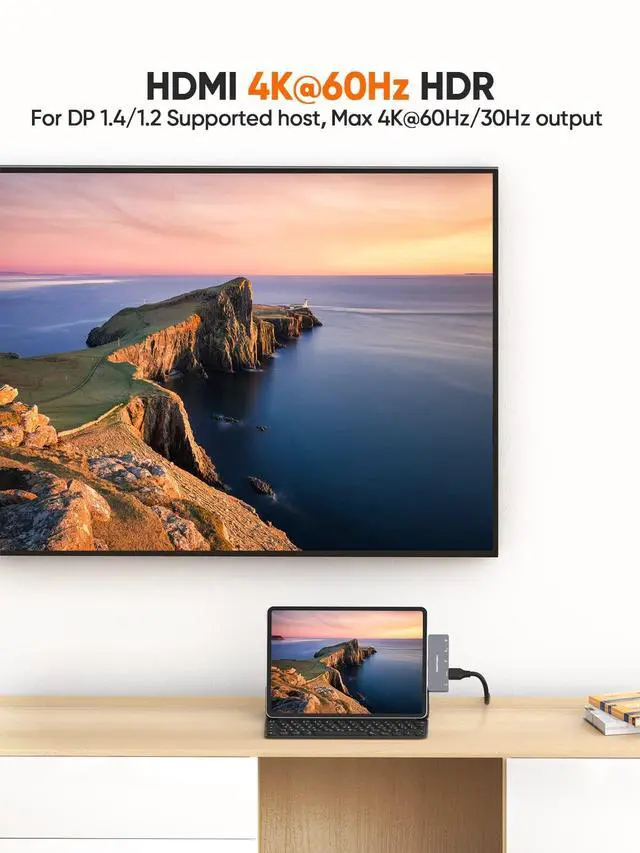 ^^ 4K@60Hz HDMI: Support Mirror or extend mode, enjoying ultra high definition images and enhanced video with brighter colors and greater contrast. ^^ USB C &