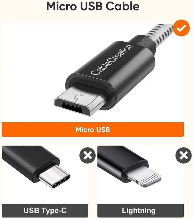 ****Attention: When connect to a TV port with this cable, please make sure that the cable is plugged into a 5V/1A port, or a USB 3.0 port. **** ^^ Fast Charge and Data Transfer24 AWG wire, charge up to 10% faster than most standard alternatives. Backwards compatible with USB 1.1. This short Micro USB Cable support sync data at 480 Mbps. ^^ Durable Micro USB CableThis Durable Micro USB cable with Aluminum case and cotton jacket Triple shielded wire (Twisted Pair shielded by Alum-Mylar, plus 100% Tin-copper braiding shielding) ensures no data loss during transmission. ^^ Universal CompatibilityThe most popular Android and Windows smart phones, tablets, and other devices with USB 2.0 Micro-B port, such as the PS 4, Galaxy Tab, Galaxy S6, Galaxy Note 4, HTC One, Moto X, Xperia Z3, G Pro 2, G Flex2, Nexus 6, Nexus 7, Dragon Touch, Stream 7 Tablet, Kindle Reader, Raspberry Pi, Lonve Blue 16GB MP4, MP3 Player and Sansa Clip+ 8 GB MP3 Player, Roku, Chrome Cast, Smart Sticks ^^ What You Get5 x Micro USB Charging Cable.