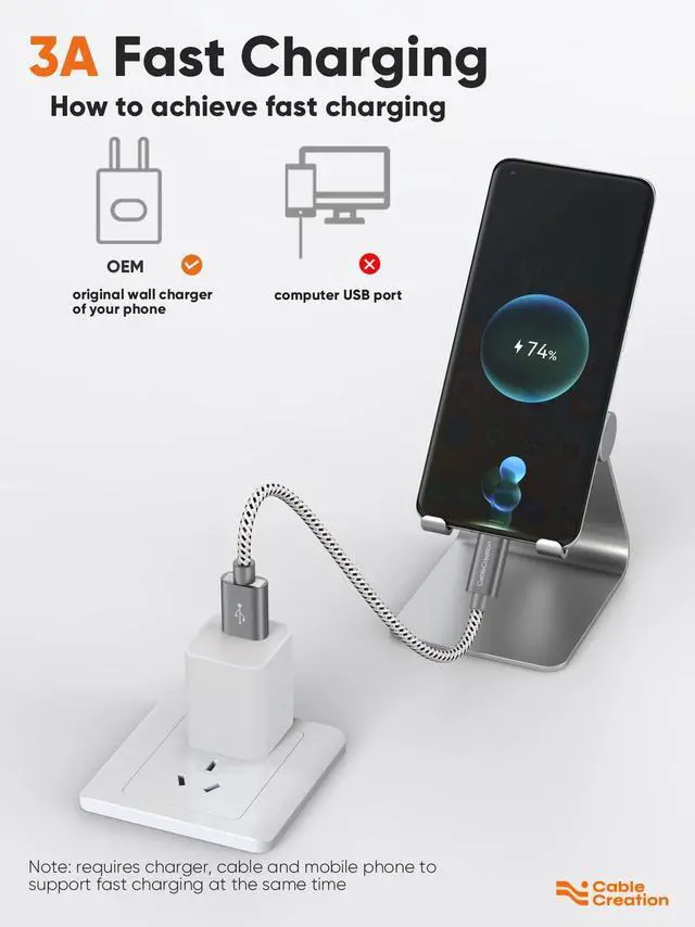 Fast Charging & Data Sync: Output power up to 3 Amp, support quick charge (QC), built in with 56K ohm resistor to protect your devices and charging adapters from damage. The short charging cable supports USB 2.0 data speed up to 480Mbps (=60MBps). (!!!