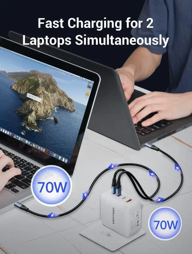 [(4 in 1 Multiport Charging )] This Macbook Pro Charger has three USB C ports and one USB A port,power two MacBook Pro laptops simultaneously. Faster, more time-saving, and space-saving for multi device users.