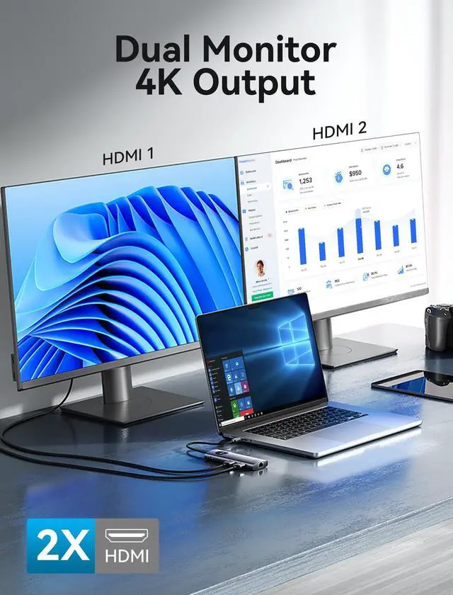 Dual Monitor Display: Elevate your productivity with easy dual monitor setup. Single display supports up to 4K@60Hz (Windows/Mac OS), and dual display supports up to 4K@30Hz (MST, Windows only). Note: MacOS laptop only support SST mode(4K 60Hz), so all external monitor screens will be the same.