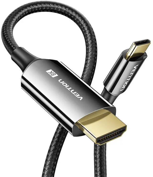 ^^ Reliable and Durable: VENTION Type-C to HDMI Cable boasts a slim and lightweight zinc alloy unibody housing, which effectively dissipates heat and resists corrosion. The 24K gold-plated connectors and multi-layer copper shielding minimize signal loss, delivering exceptional clarity and smooth sound. Additionally, the flexible braided nylon casing ensures extra durability and strain relief, guaranteeing that your cable won't fray or kink over time.