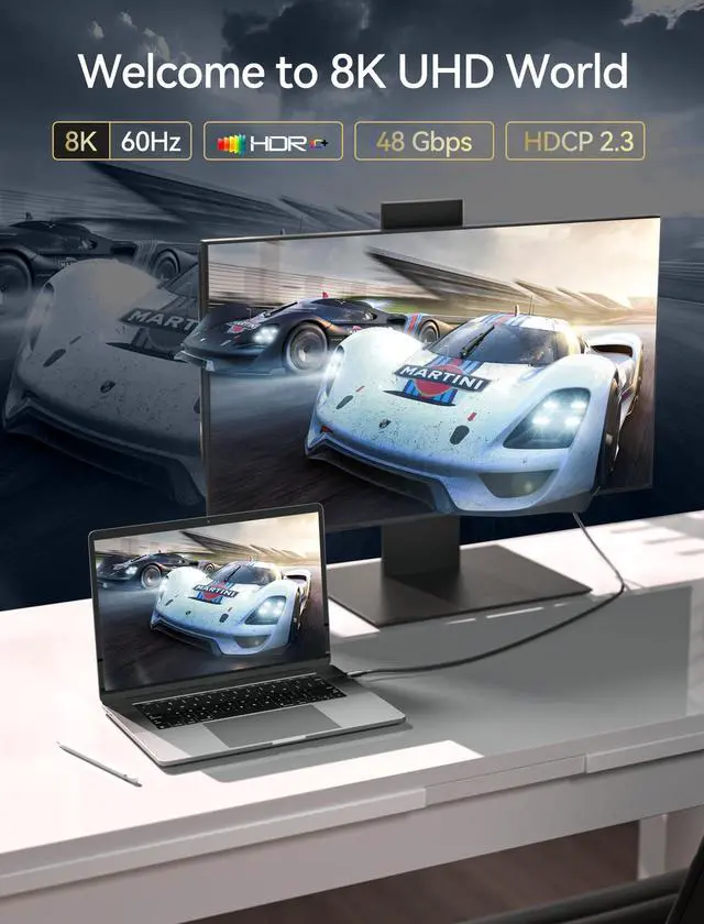 Play Solution: Experience hassle-free connectivity with this Thunderbolt 3 to HDMI 2.1 cable, as it requires no drivers or software installation. Simply plug it in, and you're ready to go! Say goodbye to lag, flickering, and time wasted on complex setups. This HDMI USB-C cord supports HDR dynamic mapping and DSC 1.2, ensuring a crystal-clear and lifelike 3D visual impact.