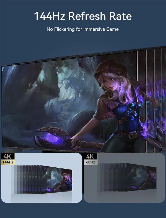 ^^ Ultra High Speed: The most recent HDMI 2.1 version is compatible with earlier HDMI 2.0, 1.4, 1.3, and 1.2 versions while transmitting data at speeds of up to 48Gbps and 240Hz. Support VRR ALLM with smoother game experience. Provide you with the most streamlined projection and home theater visual experience. With the best signal transmission, it can guarantee amazing sound and image quality, and an end to screen flickering.