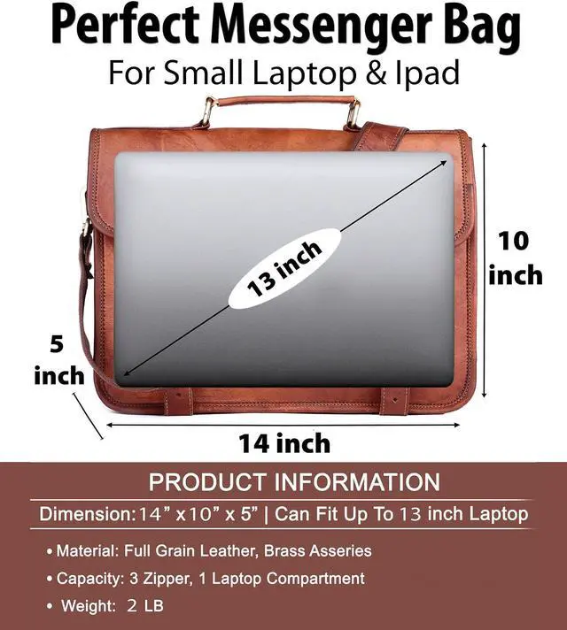 LAPTOP & TABLET FRIENDLY: This Small Mens Briefcase Has A 14-inch Compartment For A Laptop, iPad, Tablet, Computer, Documents, Books, And More. This Leather Crossbody Bag Size Is 14 inches (width), 10 inches (height), And 4-inch (depth).