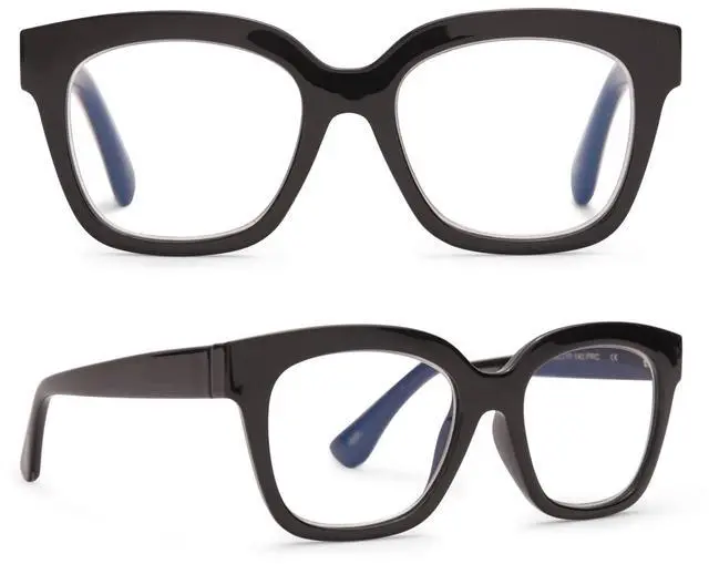 STAND OUT from the crowd with Ava's chunky square frame 50mm-17mm-142mm, pronounced temples, and dipped bridge the perfect blend of style and functionality. ^^ ENJOY the convenience of traditional readers with the added benefit of blue light blocking technology, designed to protect your eyes from the harmful rays of our every day digital devices (cellphone, computer, tv, gaming). ^^ FIT YOUR PERSONALITY from a wide range of powers to fit your needs and colors to match your outfit, all expertly crafted from premium materials for a comfortable and durable fit.