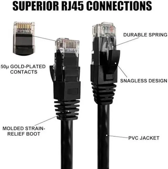 Superior Connections-RJ45 connectors of this ethernet patch cord feature 50 micron gold-plated contacts for high-speed data transfer and corrosion resistance and strain-relief boots for enhanced