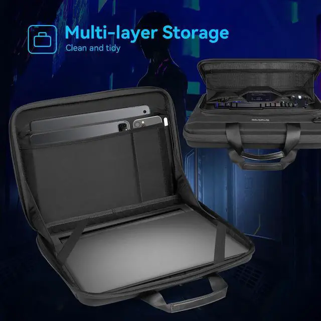EVA Double Protection Design: Features inner foam cushions + hard EVA shell to prevent the deformation of the gaming laptop, provides protection to prevent damage caused by accidental spills. Strong top-loading YKK zipper ensures the laptop bag will stay closed, which can protect your gaming laptop all around