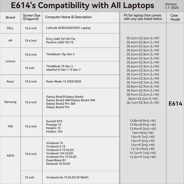 Specifically designed for 15.6 inch Samsung Galaxy Book4 Edge; 15.6 inch Samsung Galaxy Chromebook Plus; 15.6 inch Samsung Galaxy Book4/3; 15.6 inch Samsung Galaxy Book4/3 360; 15.6 inch Samsung Galaxy Book2 Pro 360; 15.6 inch Samsung Galaxy Book2 Pro, this sleeve provides a snug, tailored fit that securely holds your laptop in place, reducing movement and enhancing protection.