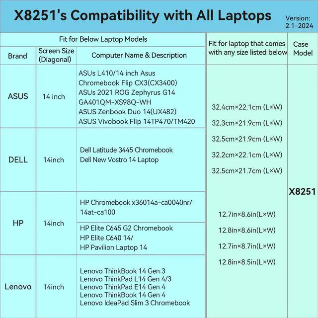 Model No.: X8251; internal dimensions of the case: 32.9x22.4x2.7 cm (13x8.8x1.1 inch)