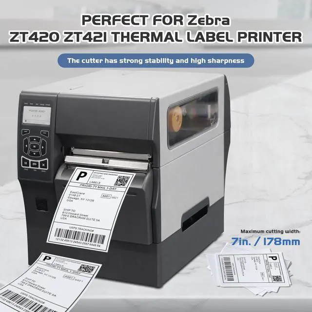 This kit cutter assembly is suitable for Zebra ZT420 ZT421 203dpi 300dpi thermal label printers, P/N: P1058930-190. Please confirm the printer model before purchasing. This cutter is made of high-grade materials, that durable to stand frequent use without losing sharpness or functionality. First-class cutting speed, improving work efficiency. You can create high-grade express electronic bill, clothing tags, supermarket price tags, tickets, etc. The iron buckle design is used to firmly fix the cutter on the ZT420 ZT421 thermal label printer. The cutter will not move when cutting for a long time.