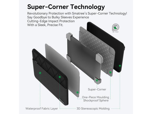 - Advanced Shock Protection with "Super Corner" Design: Our patented "Super Corner" impact protection technology is engineered to safeguard your laptop from accidental drops and bumps. This unique design delivers superior protection without adding unnecessary bulk, ensuring your device remains secure in a sleek, perfectly sized sleeve