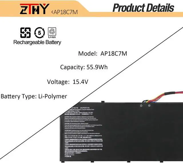 AP18C7M AP18C7K Battery for Acer Swift 3 SF313-52 SF313-52G SF313-53 SF313-53G SF316-51 5 SF514-54T SF514-54GT SF514-55T SF514-55GT Spin 5 SP513-54N SP513-55N ConceptD 3 CN315-72 CC315-72P 55.9W h