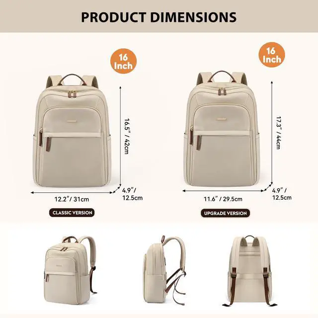GOLF QUALITY Hiking Travel Backpack for Women Casual Business Weekender Multilayer Laptop Bag, 16 Inch, Apricot