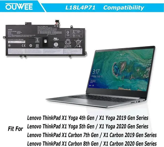 OUWEE L18L4P71 L18C4P71 Laptop Battery Compatible with Lenovo ThinkPad X1 Yoga 4th 5th Gen/X1 Carbon 7th 8th Gen Serie 02DL004 SB10K97642 02DL005 L18M4P72 SB10K97643 02DL006 SB10K97644 15.4V 51Wh