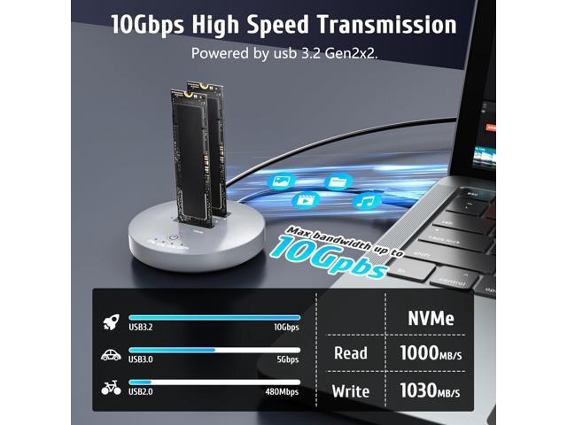 - 10Gbps Super Speed NVMe Enclosure: Our M.2 NVMe SSD enclosure equips with a USB 3.2 Gen 2x2 interface, this nvme m.2 ssd duplicator offers blazing speeds up to 10Gbps, Also equips with an independent 5V/3A power adapter,it is fast to access your profile and increase your productivity.Professionally tested: A 1TB files transfer only takes about 10 minutes to complete.
