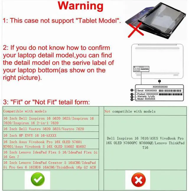 Warning: NOT compatible with Dell Inspiron 16 7610 Laptop and NOT compatible with ASUS VivoBook Pro 16X OLED N7600PC M7600QE Laptop and NOT compatible with ThinkPad T16 laptop {{Warning:Most of returned because of choosing wrong model,please confrim your laptop model}}.