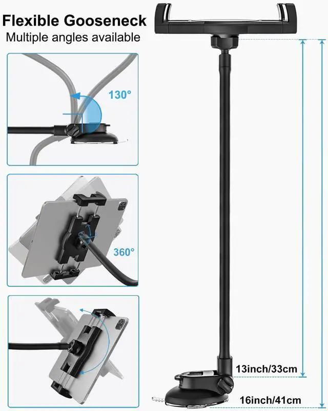 [(Versatile Long Arm Car Holder)] The car holder designed for tablet and smart phone.You can easily install the suction cup to windshield or dashboard with no tools needed.13" extra-long, ultra-flexible arms allow you to easily adjust the device within reach and easily access your tablet screen.Strong compatibility, not only suitable for small cars, but also for large trucks.Perfect for navigating, watching movie, shooting live, browsing web, or making video call use while break.