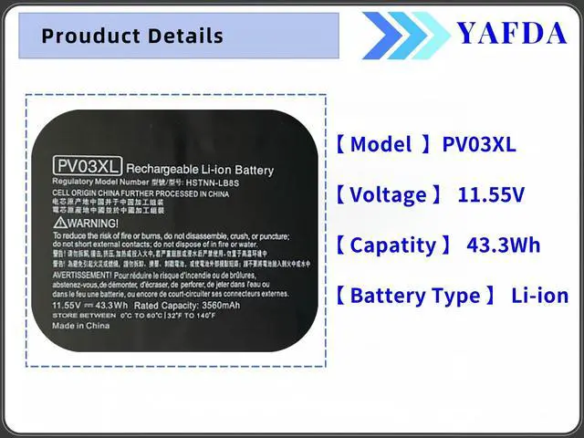 Replacement for Part Number : PV03XL PP03XL M01148-421 M01144-005 PV03XL M01118-AC1 L83388-421 L83388-AC1 L83393-005 PPO3XL PVO3XL HSTNN-LB8S HSTNN-DB9X HSTNN-OB1P