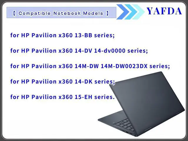 Compatible with Laptop Models : for HP Pavilion x360 13-BB series;HP Pavilion x360 14-DV 14-dv0000 series;HP Pavilion x360 14M-DW 14M-DW0023DX series;HP Pavilion x360 14-DK series;HP Pavilion x360 15-EH series.