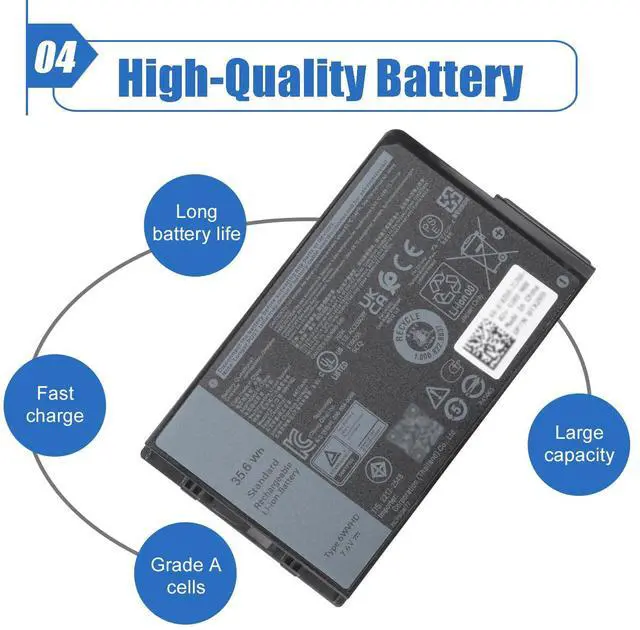 Dentsing 35.6W h 6WVHD Laptop Battery Replacement for Dell Latitude 7230 Rugged Extreme Tablet T06H T06H001 Series Notebook FNW8F VDDJY 0VDDJY JM6CX 0JM6CX 451-BDDY 7.6V 4457mAh
