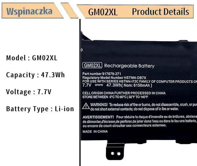 GM02XL GMO2XL HSTNN-DB7X 917679-271 917679-2C1 917725-855 HSTNN-UB7M