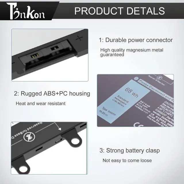 Replacement Battery Part Numbers:3HWPP Battery for Dell 3HWPP 03HWPP 10X1J N2NLL 1VY7F 3YNXM 451-BCMN;