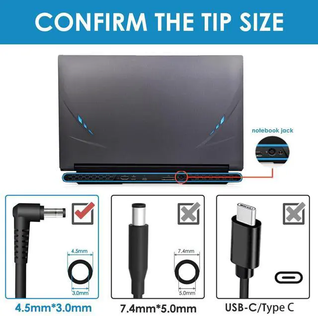 • Input: 100-240V 50-60Hz, Output : 20V/6A 120W , Plug Size: 4.5*3.0mm