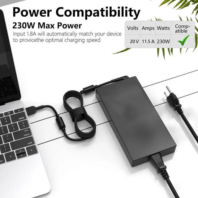 • Output: 20V 11.5A 230W(NOT COMPATIBLE with 300W),AC Input 100V ~ 240V 50 ~ 60Hz