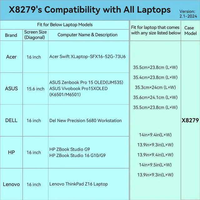 Compatibility: designed to perfectly fit for 16 inch Acer Swift X Laptop - SFX16-52G-73U6; 16 inch LG gram Style OLED; 16 inch LG gram