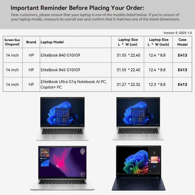 Specifically designed for 14 inch HP OmniBook 5 Flip 14; 14 inch OmniBook 5 Next Gen AI 14; 14 inch OmniBook X Laptop 14; 14 inch OmniBook Ultra Flip Laptop 14; 14 inch OmniBook Ultra Flip 2-in-1 Laptop Next Gen AI PC 14t-fh000; 14 inch EliteBook X Flip G1i Next Gen AI PC; 14 inch EliteBook Ultra G1i Next Gen AI PC; 14 inch EliteBook Ultra G1q AI PC Copilot+PC; 14 inch EliteBook 845/840 G10/G9 Notebook PC. Our sleeve provides a precise, secure fit that minimizes movement and maximizes protection