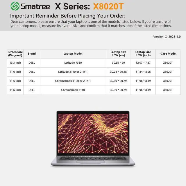 Compatibility: designed to perfectly fit for 13.3 inch DELL Latitude 7330 Laptop; 11.6 inch DELL Latitude 3140 Laptop or 2-in-1; 11.6 inch DELL Chromebook 3110 Laptop; 11.6 inch DELL Chromebook 3120 Laptop or 2-in-1 ^^
