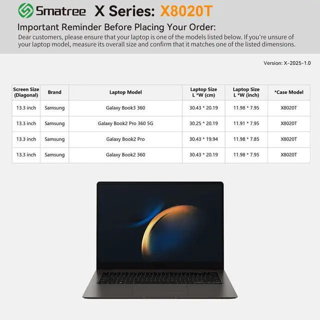 Samsung Laptops: smatree has more than 20 sizes of hard EVA protective sleeve case customized Samsung laptops. If you're not sure which model of case is fit for your laptop, please feel free to contact our customer service