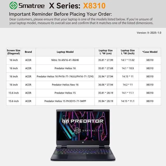 Acer Laptops: smatree has more than 20 sizes of hard EVA protective sleeve case customized for Acer laptops. If you're not sure which model of case is fit for your laptop, please feel free to contact our customer service