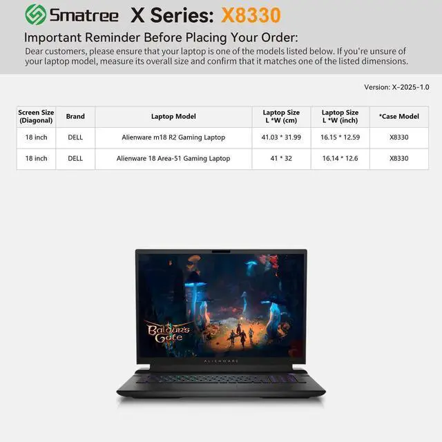 Compatibility: designed to perfectly fit for 18 inch Alienware 18 Area-51 AA18250 Gaming Laptop; 18 inch Dell Alienware m18 gaming laptop; 18 inch Dell Alienware m18 R2 gaming laptop ^^