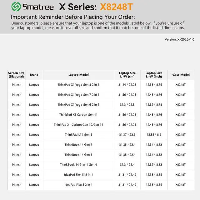 Compatibility: designed to perfectly fit for 14 inch Lenovo ThinkPad X1 Yoga Gen 8/7/6 2 in 1 laptop; 14 inch Lenovo ThinkPad X1 Carbon Gen 11/10 laptop; 14 inch Lenovo IdeaPad Flex 5i/5 2 in 1 laptop; 14 inch Lenovo ThinkBook 14 Gen 6 laptop ^^