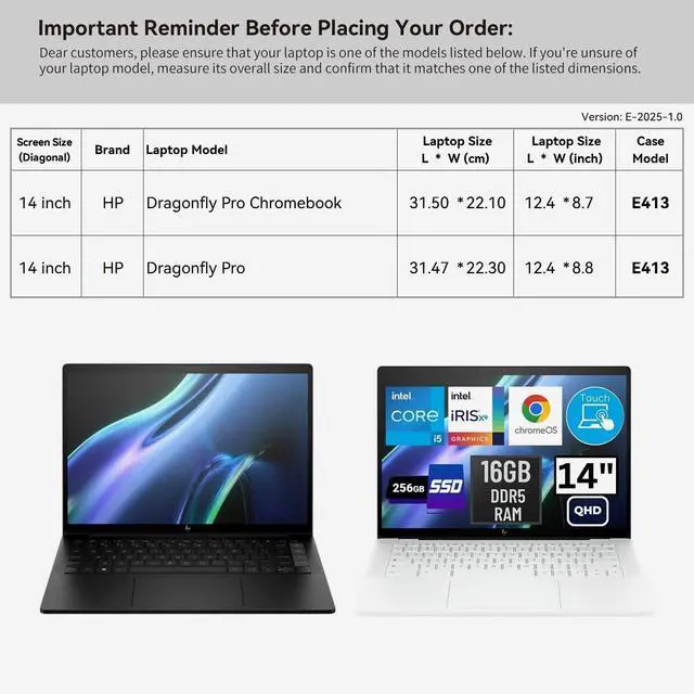 Super Corner Design: Our patented Super Corner impact protection technology is engineered to safeguard your laptop from accidental drops and bumps. This unique design delivers superior protection without adding unnecessary bulk, ensuring your device remains secure in a sleek, perfectly sized sleeve ^^ Specifically designed for 14 inch HP Dragonfly Pro Chromebook, 14 inch HP Dragonfly Pro. Our sleeve provides a precise, secure fit that minimizes movement and maximizes protection ^^ Wide Range of