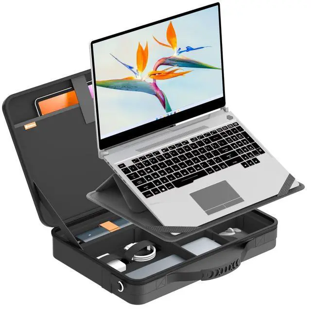 Military-Grade Protection: Shock-absorbent EVA shell with anti-scratch padding shields against drops, spills, and daily wear. Water-resistant 1680D nylon exterior prevent your laptop from water repellent ^^