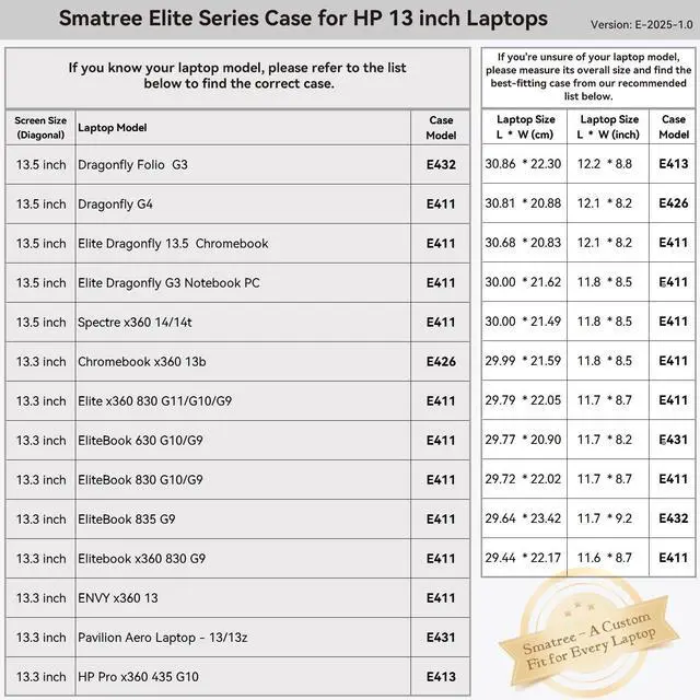 Custom Sizes: Smatree offers nearly 20 tailored sleeve options for HP laptops and many more for brands like Lenovo, ASUS, DELL, MSI, Samsung, Microsoft, Apple, Acer, Razer and others. Our sleeves are precisely crafted to match the dimensions of your laptop, providing a perfect fit that generic cases cant achieve ^^ Durable,