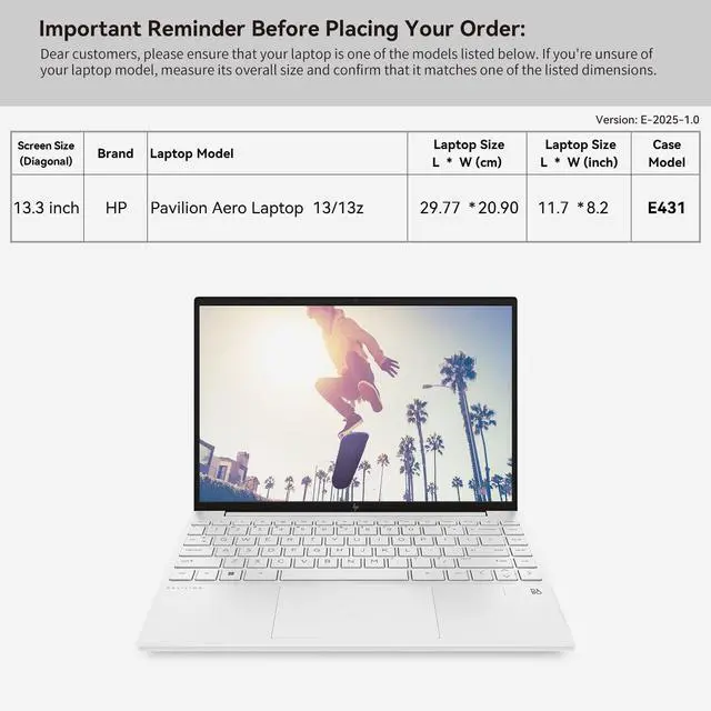 Super Corner Design: Our patented Super Corner impact protection technology is engineered to safeguard your laptop from accidental drops and bumps. This unique design delivers superior protection without adding unnecessary bulk, ensuring your device remains secure in a sleek, perfectly sized sleeve ^^ Specifically designed for 13.3 inch HP Pavilion Aero- 13z-be200/13-be2047nr/13-be1097nr; for 11.6 inch HP Pro x360 Fortis 11 G11/G10/G9; for 11.6 inch HP Fortis 11 G9 Q Chromebook; for 11.6 inch HP Fortis x360 11 G3 J Chromebook; for 11.6 HP Chromebook 11 G9; for 11.6 inch HP Chromebook x360 11 G4. Our sleeve provides a precise, secure fit that minimizes movement and maximizes protection. Enjoy a tailored, snug sleeve experience that standard cases can't offer ^^ Wide Range of