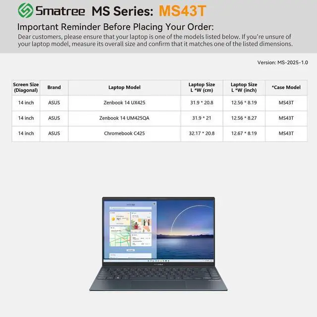 Compatibility: designed to perfectly fit for 14 inch ASUS Chromebook Plus C425; 14 inch ASUS Zenbook 14 UM425QA/UX425 ^^