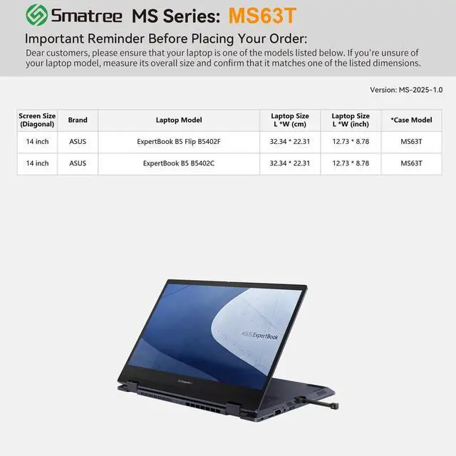 ASUS Laptops: smatree has more than 20 sizes of hard EVA protective sleeve case customized for ASUS laptops. If you're not sure which model of case is fit for your laptop, please feel free to contact our customer service