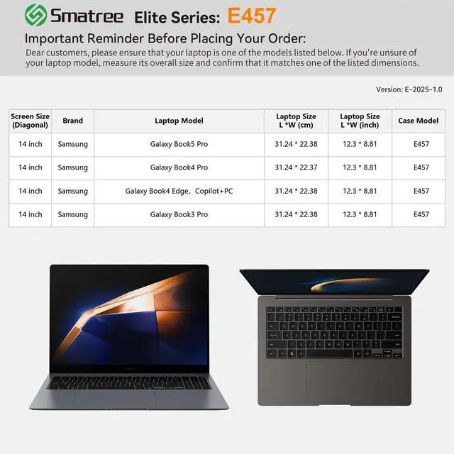 Super-Corner Design: Our patented Super-Corner impact protection technology is engineered to safeguard your laptop from accidental drops and bumps. This unique design delivers superior protection without adding unnecessary bulk, ensuring your device remains secure in a sleek, perfectly sized sleeve ^^ Specifically designed for 14 inch Samsung Galaxy Book5/4/3 Pro; 14 inch Samsung Galaxy Book4 Edge Copilot+PC. Enjoy a tailored, snug sleeve experience that standard cases can't offer ^^ Wide Range of