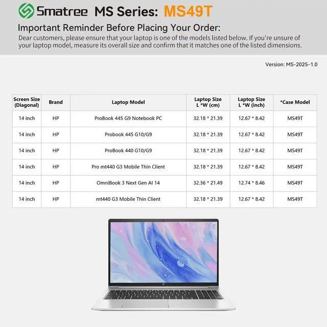 Compatibility: designed to perfectly fit for 14 inch HP OmniBook 3 Next Gen AI 14; 14 inch HP ProBook 440 G10/G9 Notebook PC; 14 inch HP ProBook 445 G10/G9 Notebook PC; 14 inch HP Pro mt440 G3 Mobile Thin Client; 14 inch HP EliteBook 640 G10/G9 Notebook PC; 14 inch HP EliteBook 645 G10/G9 Notebook PC ^^